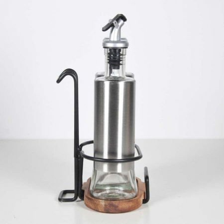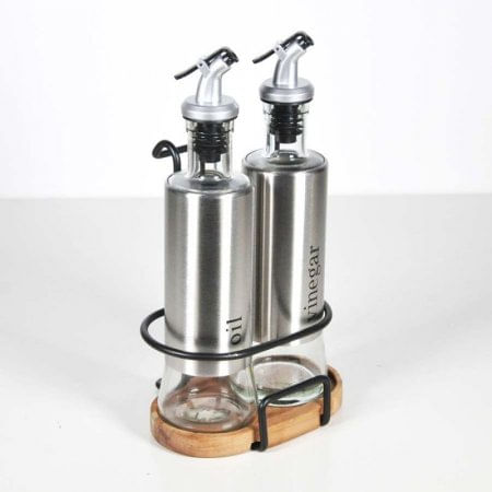 Elegante juego de vinagrera y aceite de oliva. Diseño antigoteo con boquilla de acero inoxidable con tapa sellada y tapa de solapa para adaptarse bien a la botella. Las boquillas evitan perfectamente el polvo, se vierten fácilmente, evitan derrames y goteos. Todo el mundo puede verter y dispensar aceite con una buena corriente sin fugas, controla correctamente el uso de aceite. Incluye soporte