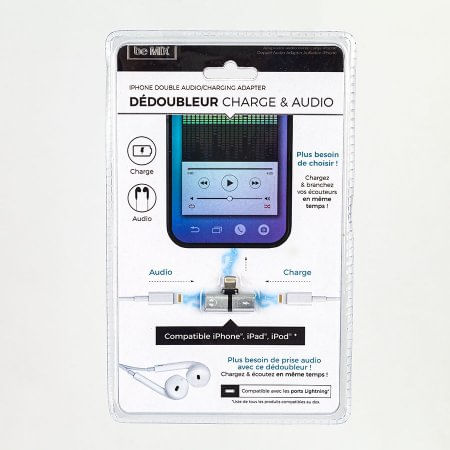 Adaptador para cargar y escuchar musica compatible con iPhone, iPad y iPod.