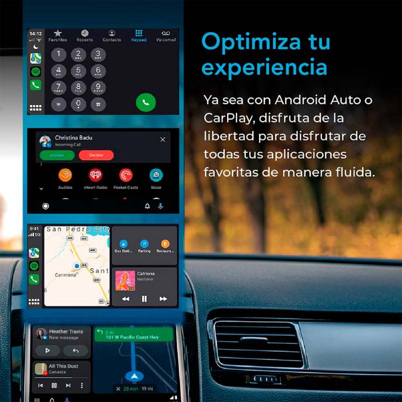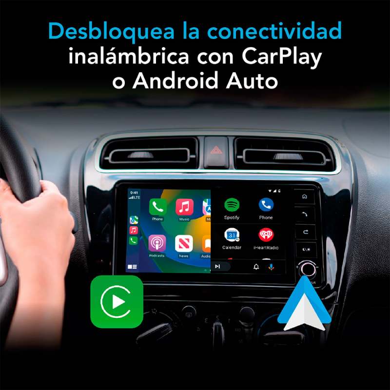 Transforma Android Auto alámbrico de fábrica en inalámbrico, siendo el adaptador más pequeño del mercado, permitiendo al usuario acceder a sus aplicaciones favoritas, llamar, enviar mensajes de texto y navegar sin cables. CARACTERÍSTICAS Transforma tu Android Auto Alámbrico a Inalámbrico Conexión USB “Conecta y Usa” Conexión automática al encender el vehículo Actualización de software en línea Todas las funciones originales de CarPlay disponibles Inicio rápido, operación sencilla Compatible con los botones y los controles originales