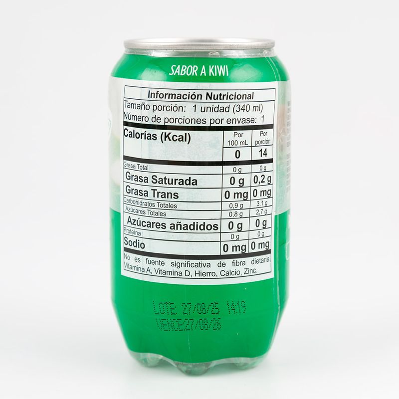Agua saborizada y carbonatada, endulzada con estevia, sabor a kiwi