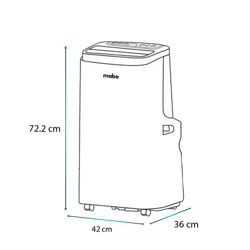 Aire Acondicionado Portátil Mabe Mantén la frescura y el confort en cualquier espacio con el Aire Acondicionado Portátil Mabe 12000 BTU. Ideal para habitaciones medianas, este dispositivo de 110v ofrece un rendimiento eficiente, permitiendo una rápida climatización con un bajo consumo energético. Su diseño compacto y elegante en color blanco se adapta a cualquier decoración, y su portabilidad te permite moverlo fácilmente de una habitación a otra. Perfecto para aquellos que buscan una solución de climatización flexible y efectiva sin la necesidad de instalaciones complejas. Fácil instalación y mas frescura, 3 funciones en un solo producto. Cool Aire frio, Fan Ventilador con 3 velocidades y Dry deshumificador. Tuberia en cobre con recubrimiento Pro Shield anticorrosivo. Refrigerante R32 contrarresta el impacto del calentamiento global.