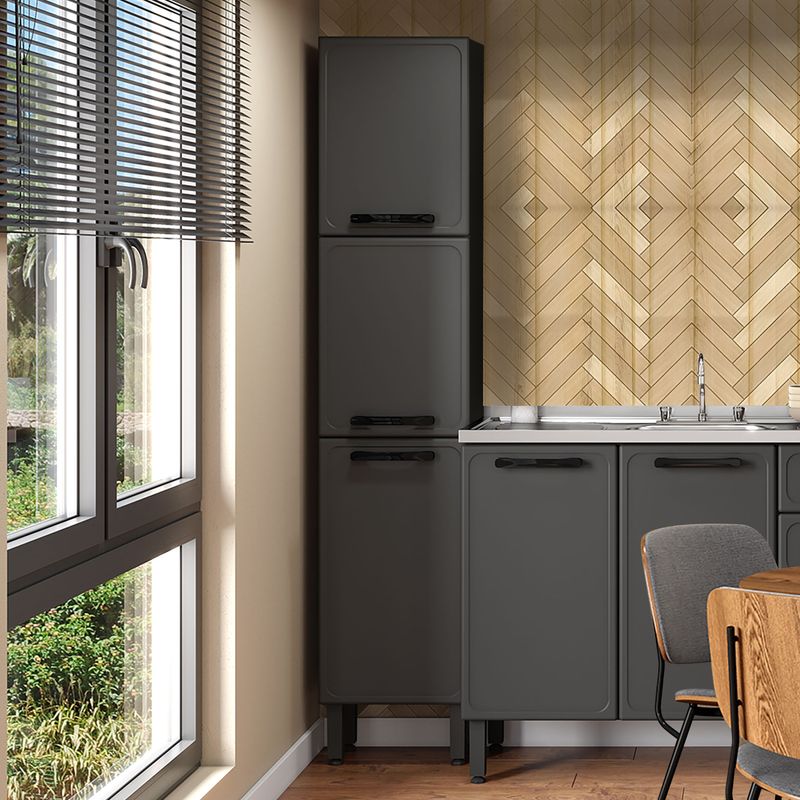 Alacena Despensa de Cocina Estilo En Acero 40cm 3 Puertas Gris Bertolini
