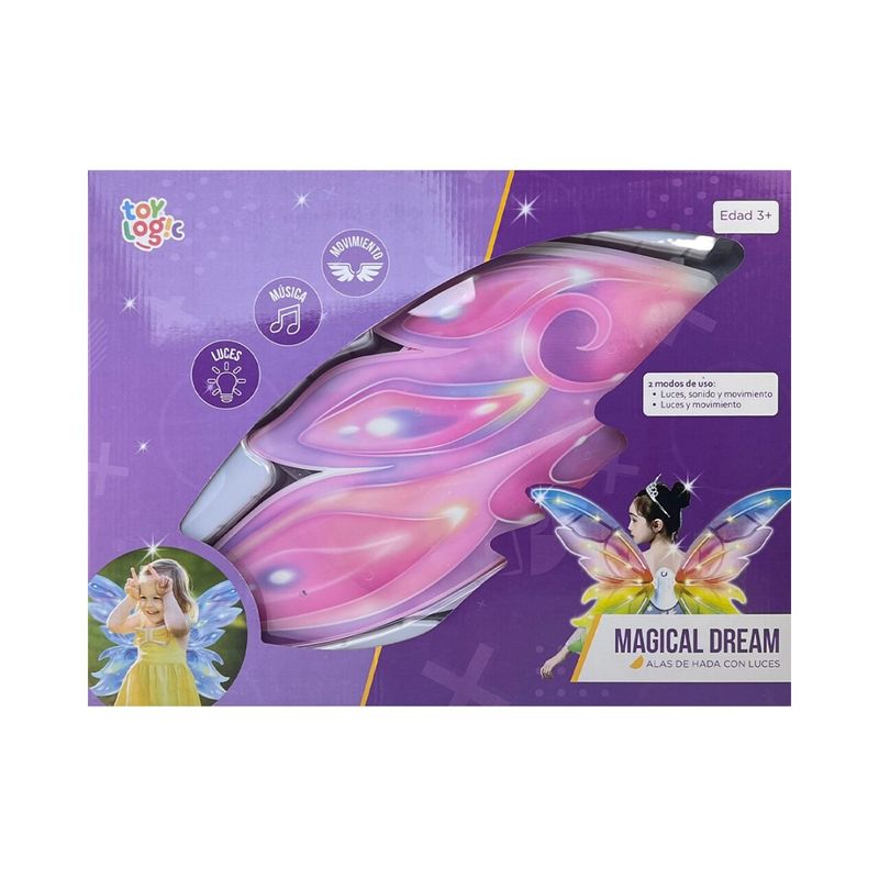 Vuela hacia un mundo de ensueno con las Alas de Hada Magical Dream. Con luces integradas y colores vibrantes, estas alas inspiran la creatividad y el juego imaginativo. Ideales para ninas que aman los cuentos magicos, fiestas o actividades artisticas, brindan diversion y brillo en cada movimiento.
