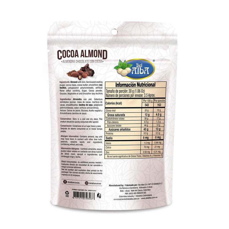 MiniMarketSnacks SaladosSnacks Maní Nueces Y SemillasAlmendra Del Alba Cubierta Cocoa 100 Gr 3515