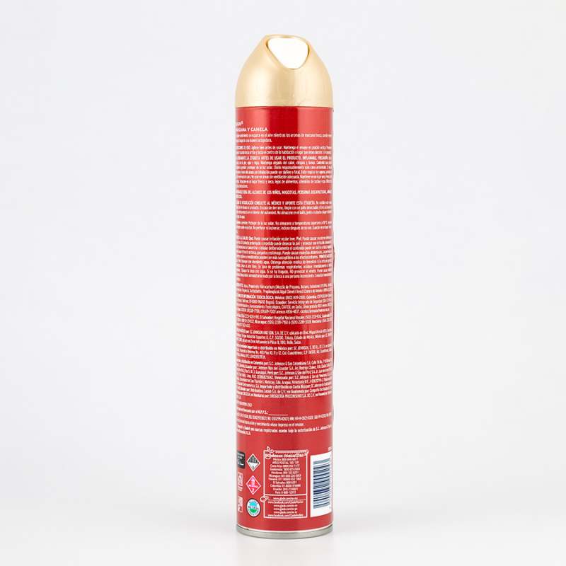 Empaque de metal. Contenido 400ml. Aroma: manzana y canela. Sistema spray. Ambientes frescos y perfumados.