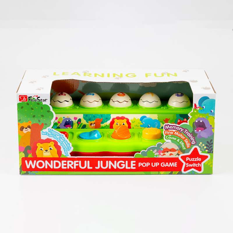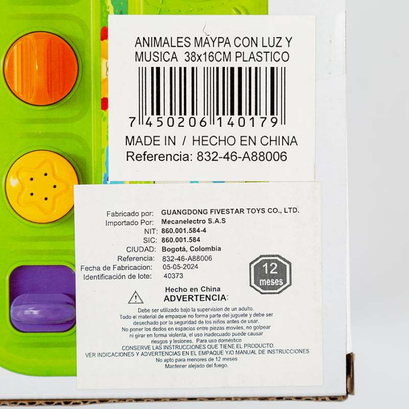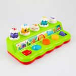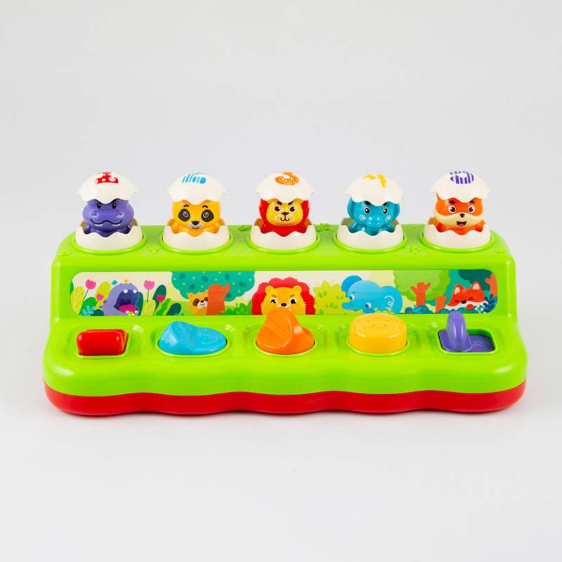 Juguete interactivo de animales emergentes con música, luz y sonidos, estimulan la habilidad motriz fina del bebé al presionar, voletar y girar los botones, juego de causa y efecto, requiere 3 pilas AAA no inlcuidas, fabricado en plástico abs de calidad, dimensiones del producto 38x16.5x16.5cm. Edad recomendada de uso mayor de 12 meses.