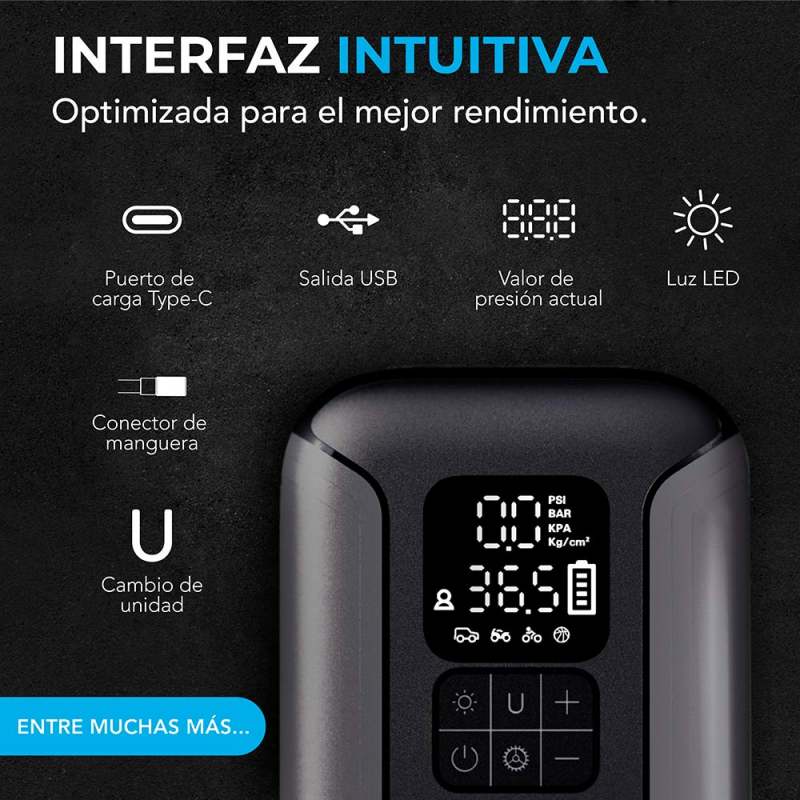Este Versátil Dispositivo Es Tu Mejor Compañero Para Emergencias En Carretera, Proporcionando Tanto Capacidades De Alimentación Como Inflado Eficiente De Neumáticos. Incluye 2 Boquillas Y Una Aguja Especializada Para Inflar.