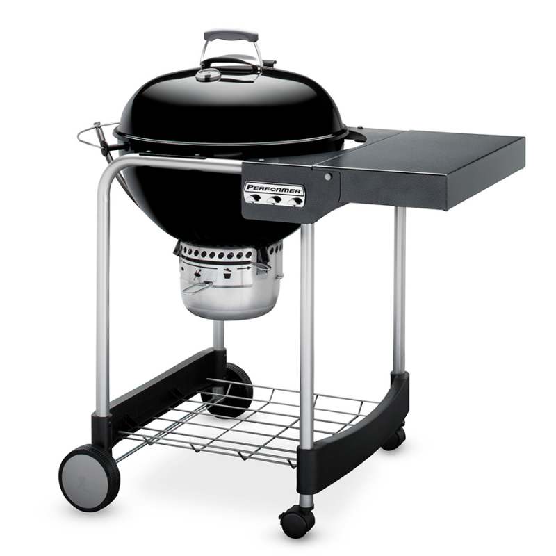 parrilla de cocción con bisagras de acero recubierto gourmet bbq system. parrilla de carbón de acero de alta resistencia. tazón y tapa esmaltados. termómetro integrado en la tapa. carro de diseño abierto. estructura del carro de acero de gran resistencia