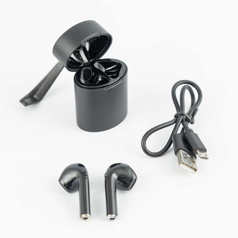 Auriculares Inalámbricos De Color Negro Con Estuche Y Conexión Bluetooth, Cmp Iberica. La Compra Incluye: 2 Auriculares Inalámbricos. 1 Estuche De Carga. 1 Cable De Carga Usb/Micro Usb. Dispone De Conexión Bluetooth, Lo Que Permite Escuchar Tu Música Favorita De Manera Inalámbrica. Son Livianos, Poseen Un Alto Rendimiento Y Gracias A Su Diseño Ergonómico Se Adaptan Perfectamente A Cualquier Morfología. La Configuración De Los Auriculares Con El Teléfono Es Instantánea. Posee Un Estuche De Recarga Que Mide 3,8 Cm De Ancho, 5 Cm De Alto Y 2,8 Cm De Fondo. Este Producto Es Ideal Para Escuchar Música Y Realizar Llamadas. Tiene Correa De Mano Incluida. Es Compatible Con Android, Ios Y Windows. Datos Técnicos: Entrada: 5 V. Resolución De Sonido: Estéreo. Batería De Litio Del Estuche: 3,7 V, 400 Mah. Batería De Litio De Cada Auricular: 3,7 V, 50 Mah. Carga Mediante Puerto Usb Estándar. Su Tiempo De Carga Es De 2 H Aprox. Autonomía: Posee Unas 4 H Y 30 Min De Funcionamiento Aprox.