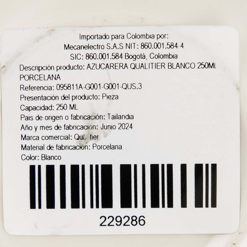 Azucarera Qualitier Blanco 250 Ml Porcelana Capacidad: 250 ml Material: Porcelana, un material resistente, elegante y duradero, que mantiene la temperatura y preserva el contenido sin afectar su sabor.