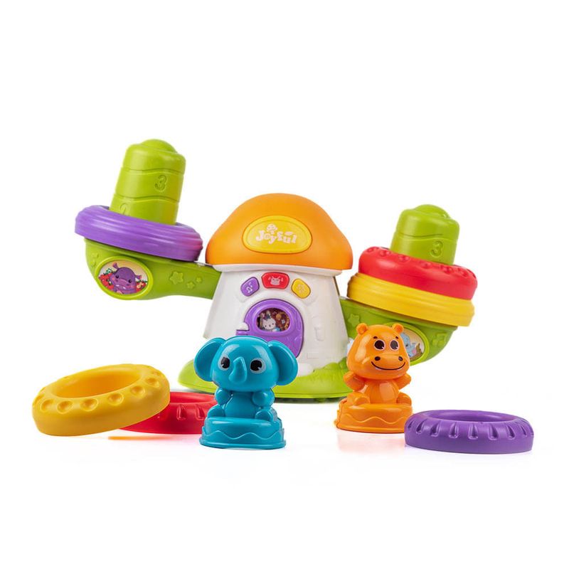Si estás buscando una manera de enseñarle a los más pequeños, esta balanza es lo que estabas buscando. Ayuda a los más pequeños a entender conceptos de peso y cantidad, además los introduce al mundo de las matemáticas, cosa que los ayudará para cuando crezcan. Incluye 6 aros de colores y 2 animalitos, esto les ayudará a entender cuál es más pesado, cómo son iguales y cómo son diferentes; cuando la vara de equilibrio se inclina hacía alguno de los dos lados, emite divertidos sonidos que harán más dinámico el juego y al oprimir los botones reproduce distintas melodías.