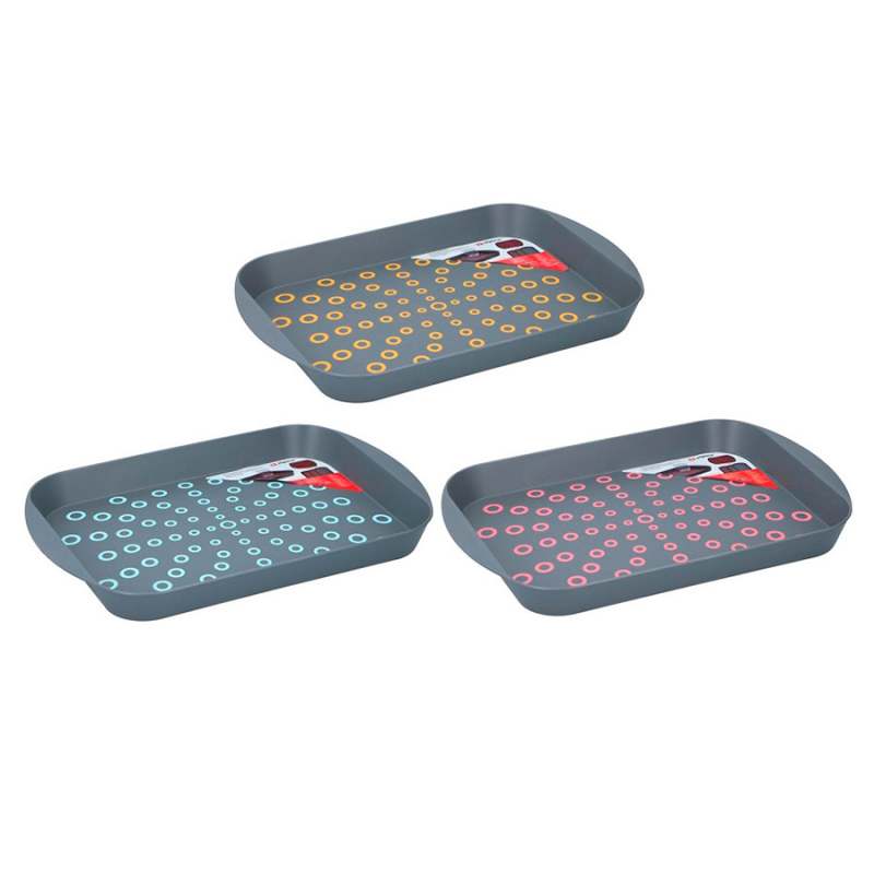 Bandeja para servir. Marca: Alpina. Material: polipropileno. Medidas: 29.5x44x4.5cm. Colores: 3 colores surtidos. Peso: 0,36Kg. Atributos adicionales: Diseño ergonomico. No se desliza. Sirve para servir cualquier tipo de comida. Facil de limpiar. Los productos marcados como 'PRODUCTO SURTIDO' pueden no ser idénticos a los que aparecen publicados en las imágenes. Las imágenes son ilustrativas. Al comprar un producto identificado como producto surtido, aceptas que podrás recibir un producto con características y atributos tangibles diferentes a los que aparecen en las imágenes del sitio o la publicidad. Los productos surtidos mantendrán las propiedades físicas, químicas y técnicas necesarias para su funcionamiento y uso de acuerdo a su naturaleza.