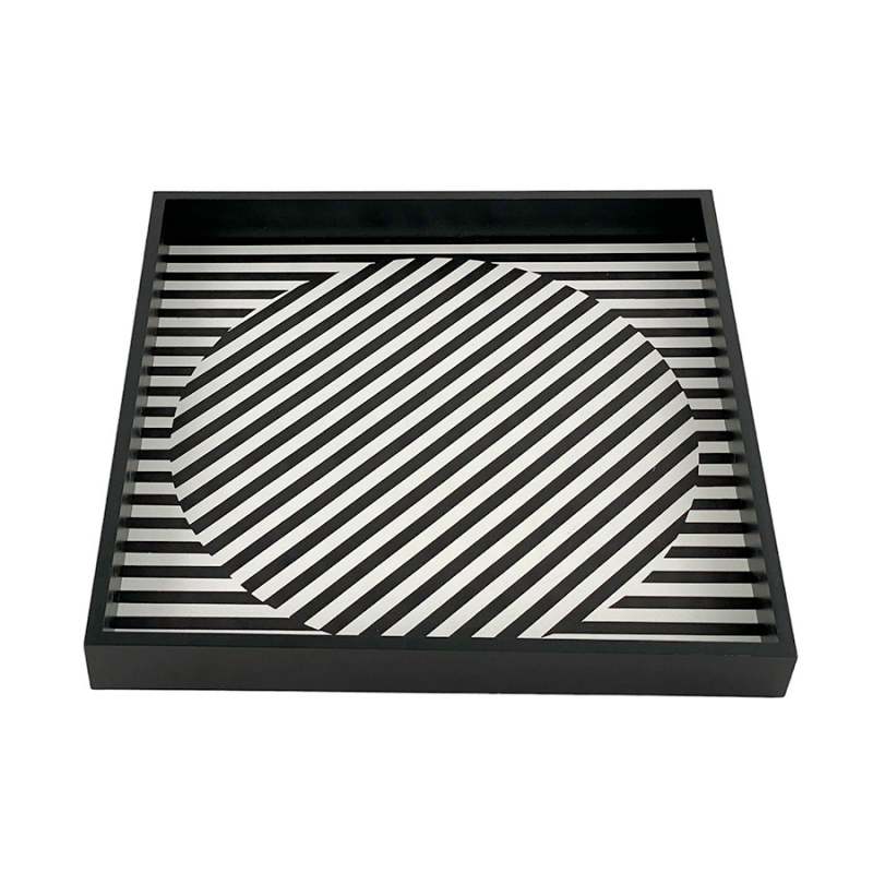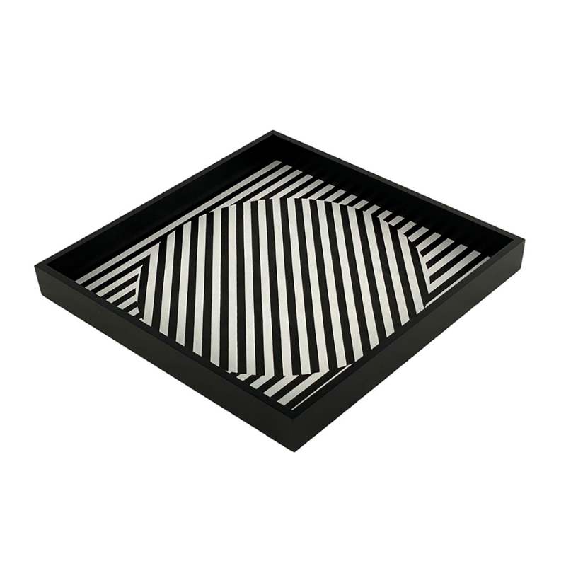 Bandeja decorativa Monocromía 33×3×33 cm, elaborada en MDF con diseño de cuadros en blanco y negro. Su estructura cuadrada y patrón clásico reinterpretado aportan orden visual y un toque gráfico distintivo. Ideal para complementar mesas auxiliares, consolas o repisas en ambientes contemporáneos, monocromáticos o de inspiración geométrica.