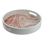 Bandeja decorativa Oval color blanco con interior estampado en tonos rosados y acabado liso, medidas 30x5x30 cm, pieza versátil que facilita servir u organizar accesorios mientras aporta un detalle decorativo armonioso a mesas y superficies.