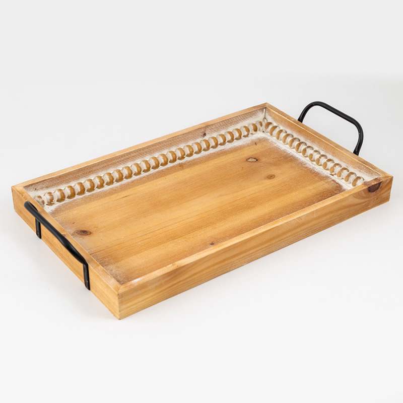 Bandeja Decorativa 24465 En Madera Color: Marron Largo: 45.72 Cm X Ancho:22.86 Cm X Alto: 7.62 Cm
