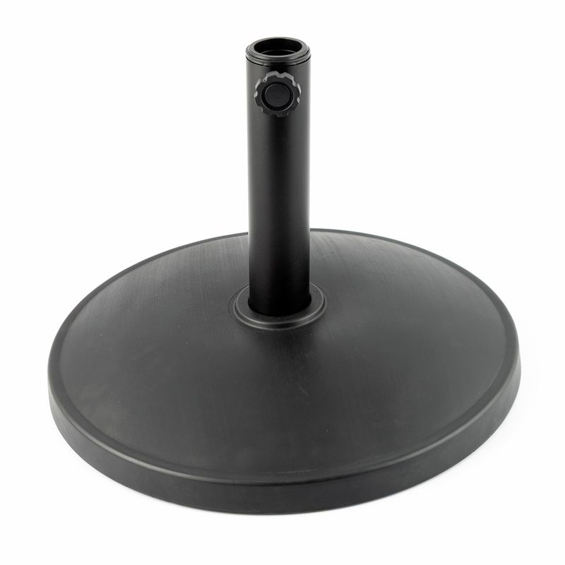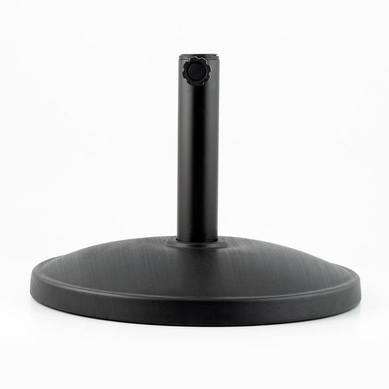 base redonda para sombrilla con cubierta de hdpe, 12 kg. tamaño del producto: 45 cm de diámetro * 6,5 cm de altura. tamaño del tubo de acero. reguladores de plástico 2 en 1, aptos para postes de 48/38 mm de diámetro