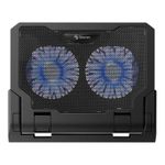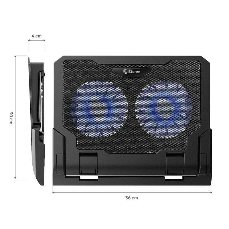 Mejora el rendimiento de tu laptop al mismo tiempo que la proteges de sobrecalentamiento, con esta base con sistema de enfriamiento. Es para laptops de 7' a 17' e incorpora 2 ventiladores que envían aire frio, de forma silenciosa, a la parte baja de la computadora. Además, tiene luz LED en color azul en ambos ventiladores. Cuenta con ajuste de inclinación para que coloques tu laptop en alguna de sus 5 posiciones diferentes y trabajes como mejor te acomode. Es fácil de colocar e instalar ya que la alimentación es a través de cualquier puerto USB de tu computadora, y no perderás ese puerto que utilices, ya que la base tiene uno adicional para que sigas usando tus periféricos como memorias, teclados o mouse inalámbricos. Diseño ergonómico Ajuste de 5 posiciones Para laptop de 7 a 17” Sistema silencioso Entrada: 5Vcc 500mA Ventiladores: Consumo: 2W máx. Velocidad: 1200 rpm ±10% Flujo de aire: 115 CFM máx. Nivel de ruido: 21-26,5 dBA