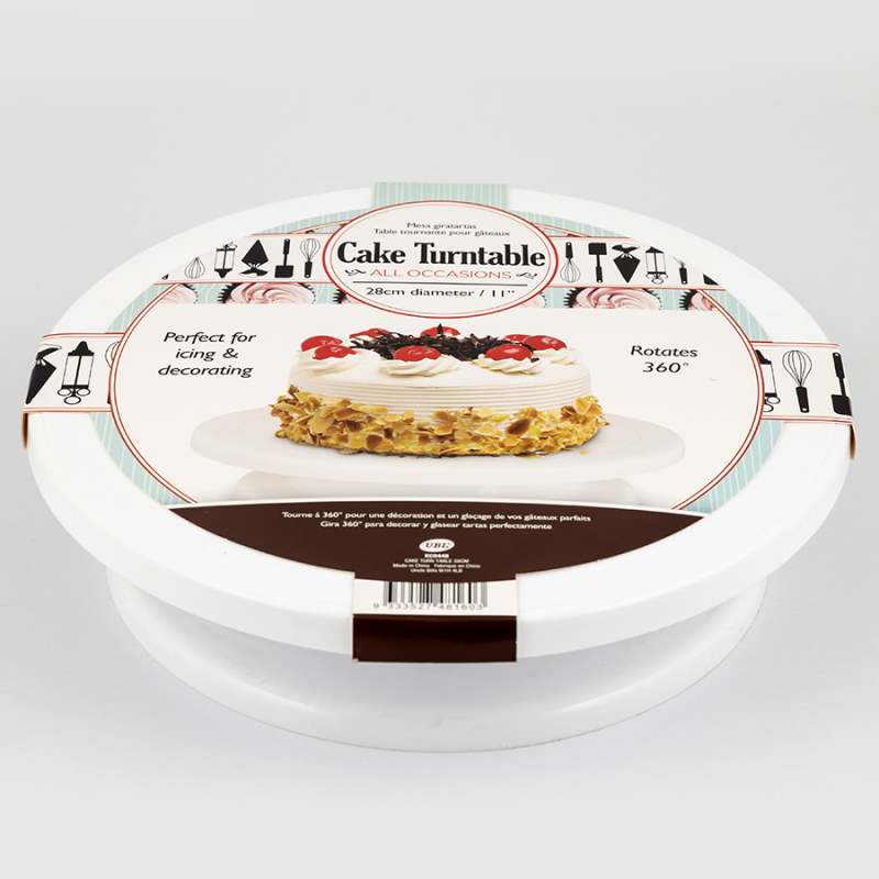 Base giratoria para facilitar la decoracion de tortas, color blanca plastica polipropilno dimensiones de 28 x 7cm