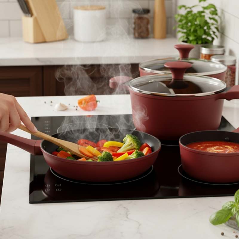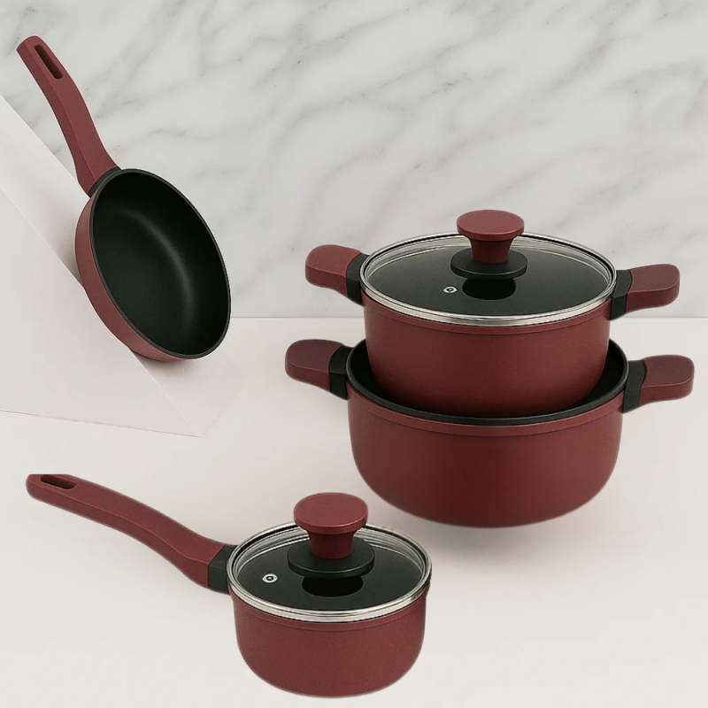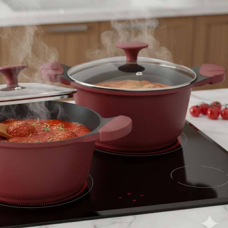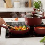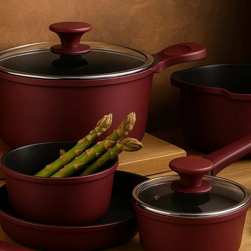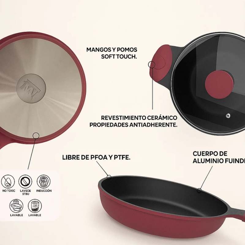 La batería de cocina Berries de 7 piezas Kitchenware transforma cada receta en una experiencia llena de color y sabor. Su diseño moderno en tono berries aporta elegancia a tu cocina, mientras que su revestimiento cerámico antiadherente cuida tus preparaciones y te permite cocinar con menos aceite, de forma más saludable. Hecha en aluminio fundido de alta resistencia, esta batería asegura una cocción uniforme y rápida, ideal para quienes disfrutan de compartir en familia o sorprender con platos únicos. Sus tapas de vidrio templado con válvula de vapor permiten ver cada detalle de la cocción sin perder calor.