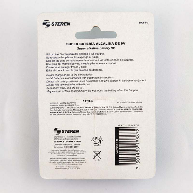 MiniMarketPilas CargadoresPilas 9 VoltiosBateria Steren Alcalina 9 V Bat-9V