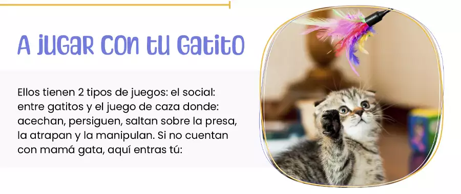 3. El tiempo de juego debe ser corto e intenso, máximo 10 minutos; y siempre debes permitir que el gatito “cace” el juguete y lo manipule. Por eso no se recomienda el uso de rayos láser, les genera frustración.