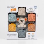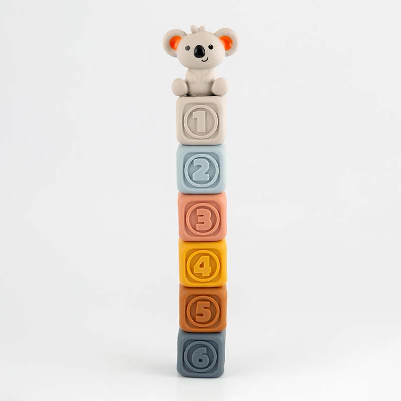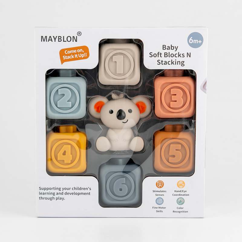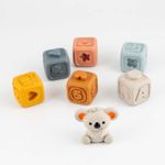 Juego de bloques suaves para apretar, apilar y morder, estos coloridos bloques no solo les encantaran a tus niños, se divertiran derribandolos y volviendolos a apilar, fabricado en plastico suave texturizado, juego de aprendizaje, educativo, promueve el desarrollo sensorial y las habilidades motoras finas, incluye 6 cubos, 1 koala, dimensiones del producto 24.1x5.8x21.5cm. Edad recomendada de uso mayor de 6 meses.
