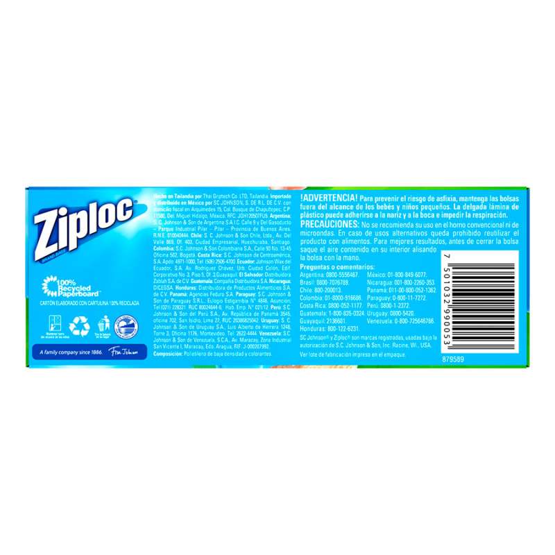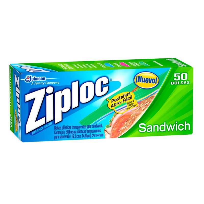 Ziploc Bolsa Reutilizable para Sándwich 50 Piezas, Ideales para llevar sandwich, galletas, snacks y meriendas al colegio, universidad o al trabajo