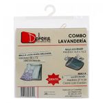 Set de tres mallas para lavanderia. Incluye malla lava brasier de 16.5 x 16.5 cms. Malla lava ropa con cierre con cremallera de 58 x 72 cms. Malla para ropa delicada con cierre con cordon de 37 x 24 cms. Prácticas. Protegen las prendas efectivamente. Elaboradas en Colombia.