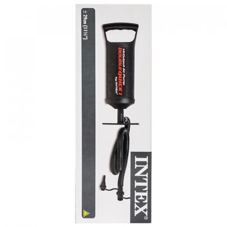 Bomba de Aire Intex Diseñada con un mango tipo acordeón para un mejor agarre, cuenta con un sistema de inyección de aire de doble acción, permitiendo inflar con movimientos de arriba hacia abajo. Su tamaño compacto de 29 cm facilita su transporte sin inconvenientes. Incluye tres boquillas intercambiables, adaptándose a diferentes tipos de válvulas. Fabricada en plástico de alta durabilidad, es ideal para inflar globos, equipos de camping y otros accesorios.