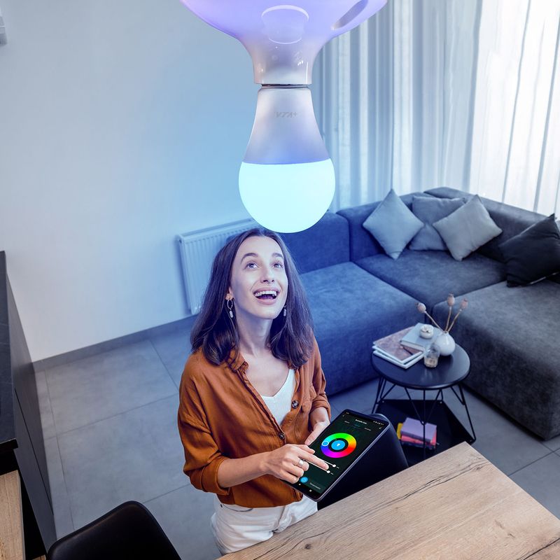 Ilumina tu hogar de manera inteligente con el Bombillo Inteligente LED Bulb A19 9W VTA+. Controla la luz de forma remota desde la aplicación, programa horarios de encendido y apagado, o crea rutinas personalizadas. Compatible con Google Home y Alexa, permite ajustar el color y la intensidad con comandos de voz. Ofrece una amplia gama de colores RGB, además de luz cálida (2700K) y blanca (6500K). Su diseño estándar con socket E27 facilita la instalación en cualquier lámpara. Bajo consumo de energía y activación rápida en menos de 2 segundos. ¡Iluminación eficiente y moderna para tu hogar!