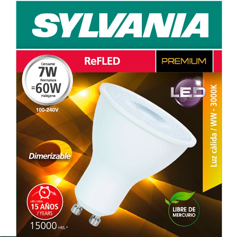 Bombillo LED en formato reflector PAR16 con base GU10, su tecnología y diseño brinda una distribución uniforme de luz. Bajo consumo, ahorra hasta el 90% de energía comparado con bombillas halógenas. Compatible con dimmers o atenuadores tipo corte de fase para LED. Excelente diseño óptico. Potencia 7W, color de luz cálida.