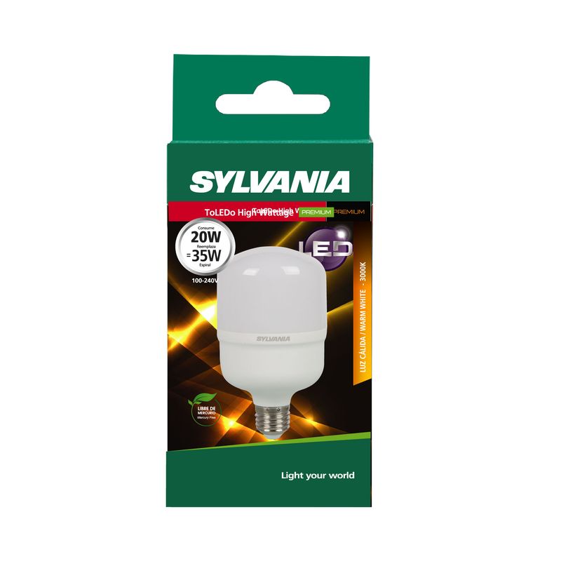 Bombillo LED de alta potencia y alto flujo, su tecnología y diseño brinda una distribución uniforme de luz. Bajo consumo, ahorra hasta el 80% de energía comparado con los bombillos incandescentes y compactos ahorradores de flujo similar. Diseño robusto. Color de luz cálida, base e27. Potencia 20W.