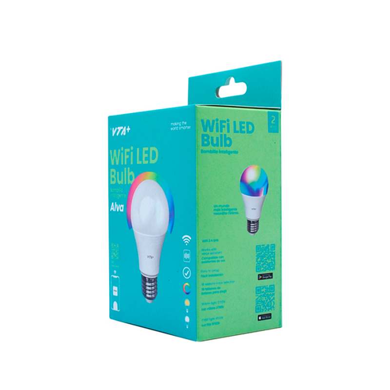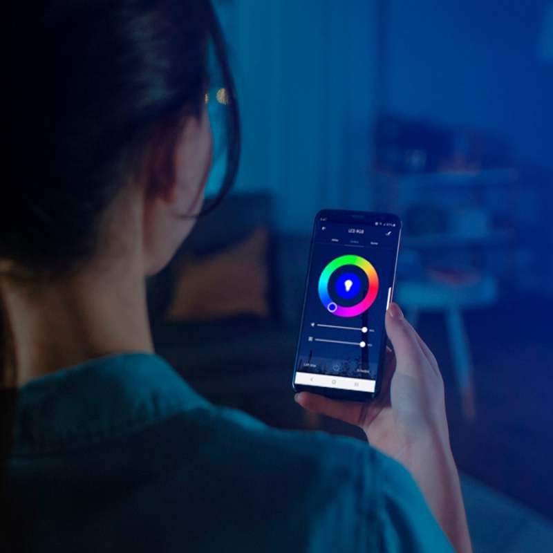 Bombillo LED inteligente con activación remota por aplicación. Automatice y controle su iluminación de forma remota, programe el tiempo de encendido o apagado o cree rutinas de encendido desde la aplicación, activación desde la aplicación menor a 2 segundos, diseño y tamaño igual a un bombillo normal, compatible con asistentes de voz como Google Home y Alexa, color de la luz: Cálida 2700K/Blanco 6500K, RGB: Rojo, verde, Azul y todas las combinaciones posibles entre estos colores, color e intensidad ajustable desde la aplicación o por comandos de voz, escenas y rutinas de colores preprogramadas desde la aplicación, bombillo con socket E27.