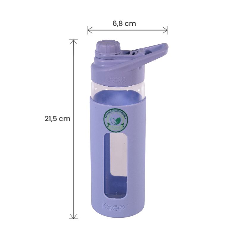 Por qué elegir una botella de vidrio? Las botellas de vidrio se han ganado su lugar en la rutina diaria por ser una alternativa segura, duradera y libre de sustancias químicas. Pero no todas las botellas son iguales, y la de Keep tiene detalles que realmente hacen la diferencia. Características que la hacen única Capacidad ideal: 470 ml, ni muy grande ni muy pequeña. Con casi medio litro de capacidad, favorita a cualquier parte sin que pese demasiado o ocupe mucho espacio. Esta botella es perfecta para llevar tu agua, jugo o infusión Medidas: Alto 22.0 cm x Ancho 22.0 cm x Largo 63.0 cm.