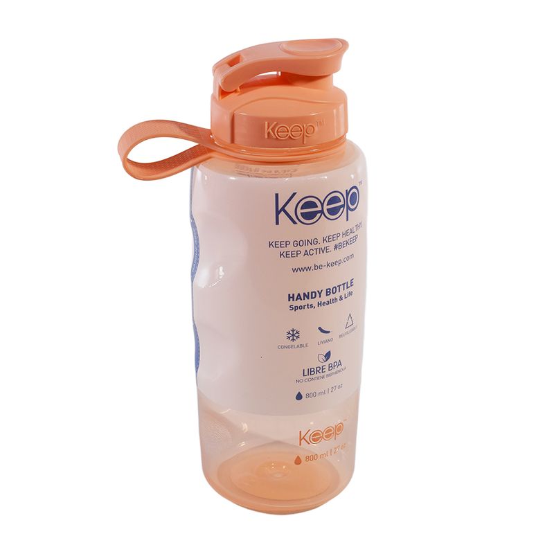 Su diseño moderno y elegante la hace ideal para cualquier ocasión. Cuenta con una capacidad de 800 ml, perfecta para mantenerse hidratado durante el día. Su material la hace resistente y fácil de manejar. Además, incluye medidas en el cuerpo de la botella para un control preciso de la cantidad de líquido consumido.