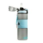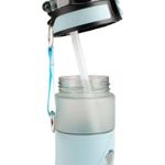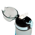 Botella 650ml, color azul, con correa de agarre, pitillo,boquilla, seguro en tapa y anti derrame. Para Bebidas Frías, libre de BPA.