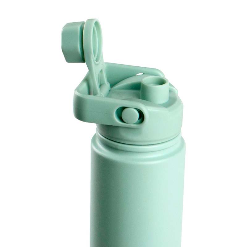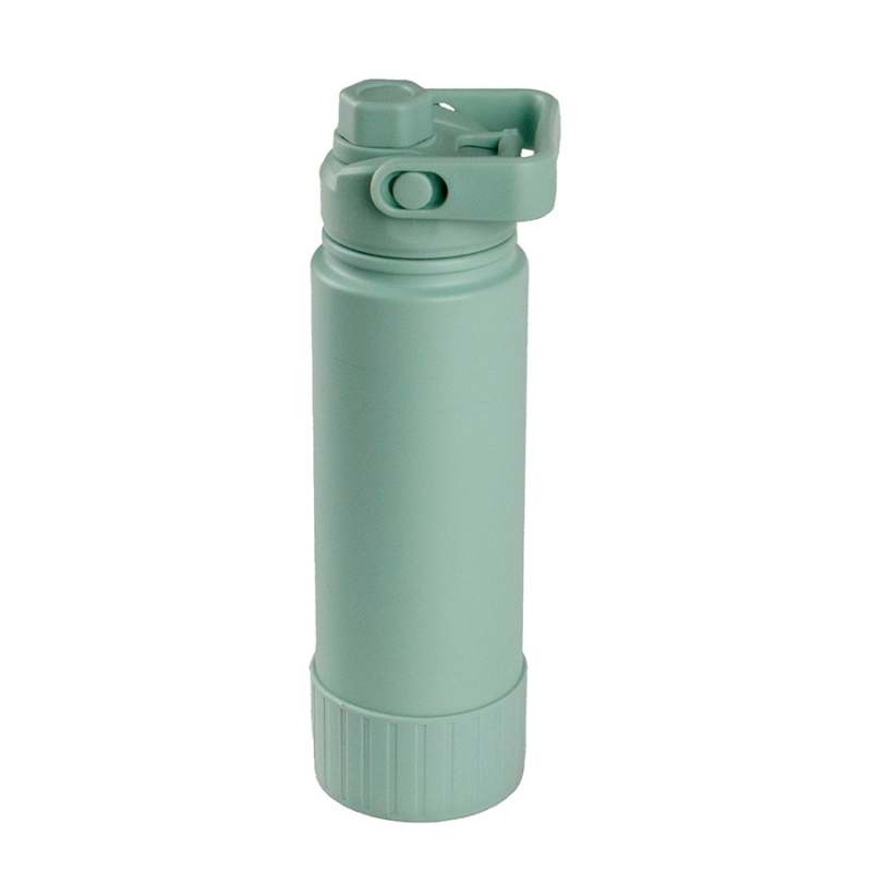 Botella Color Menta Frost. 720 ml, 26,3 X 7,6 X 7,6. en acero inoxidable a prueba de derrames. Viene con aislamiento al vacío de doble pared para preservar la temperatura y frescura por más tiempo: 24 horas frío / 12 horas caliente. Libre de BPA, Su boquilla cuenta con una tapa giratoria que está unida a la tapa principal, evitando su pérdida. Además, tiene una cargadera de mano en la parte superior para mayor comodidad durante su transporte. En su base cuenta con una protección de silicona que proporciona mayor fricción y seguridad sobre las superficies, evitando accidentes. Fabricada con materiales seguros para tu salud y respetuosos con el medio ambiente.