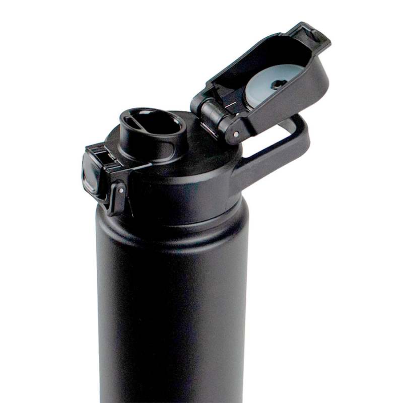 Botella Color Negro Glacier, 720 ml, 26,5 X 7,6 X 7,6. En acero inoxidable a prueba de derrames. Viene con aislamiento al vacío de doble pared para preservar la temperatura y frescura por más tiempo: 24 horas frío / 12 horas caliente. Libre de BPA, su boquilla cuenta con una tapa giratoria que está unida a la tapa principal, evitando su pérdida. Además, tiene una cargadera de mano en la parte superior para mayor comodidad durante su transporte. En su base cuenta con una protección de silicona que proporciona mayor fricción y seguridad sobre las superficies, evitando accidentes. Fabricada con materiales seguros para tu salud y respetuosos con el medio ambiente.