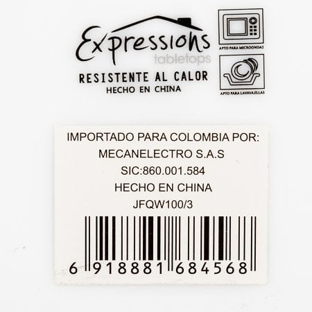 Bowl tazon. Marca: Expressions tabletops. Material: Vitroceramica. Capacidad: 1010ml. Diametro: 25cm. Forma: cuadrado. Color: blanco. Apto para lavavajillas y microondas