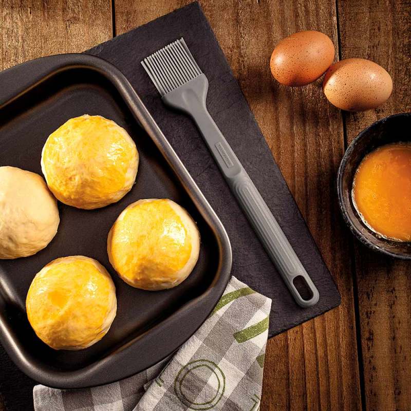 Pincel de silicona que soporta temperaturas de hasta 210 °C. Mango con orificio para colgar en la cocina. Utensilio ideal para sartenes con revestimiento antiadherente y cerámico, ya que no las daña. Utensilio de silicona de alta calidad, ideal y seguro para uso alimentario, conforme a las normativas ANVISA y FDA. Apto para lavavajillas, para que tu día a día sea más fácil.