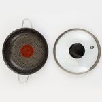 Cacerola 14cm. Esta nueva línea antiadherente será tu mejor aliada en la cocina gracias a su avanzada tecnología. Base difusora de calor, termo señal que indica el momento ideal para comenzar y antiadherente Triforce. ¡Hasta 3 veces más durable! Mango ergonómico y seguro. Primer sartén triangular con tapa de vidrio en el mercado. Cocción homogénea de tus alimentos por su base difusora de calor. *Máximo aprovechamiento de los nutrientes cocinando a la temperatura ideal indicada por la termoseñal. *Usa menos aceite gracias al antiadherente Triforce.