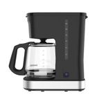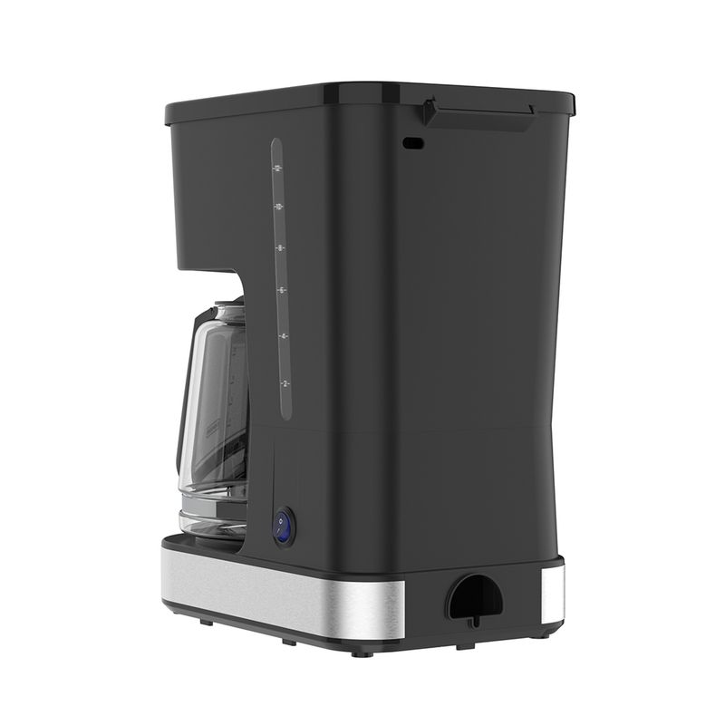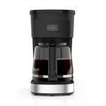 Cafetera Black & Decker de color negro con capacidad para preparar hasta 12 tazas de café, equipada con una jarra de vidrio y carrocería en plástico resistente; su potencia de 900 W permite un colado eficiente, y cuenta con filtro permanente reutilizable y funciones que facilitan el uso diario, ofreciendo un café caliente con sabor intenso y un diseño práctico para cocinas domésticas.
