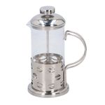 Cafetera Francesa Alpina Transparente En Vidrio. Capacidad: 350 Ml (3 Tazas). Dimensiones: 10 X 23 Cm. Diseño Exterior Con Tapa Y Doble Asa En Acero Inoxidable. Émbolo Y Filtro De Malla En Acero Inoxidable, Ideales Para Capturar Partículas De Café Y Generar Un Aroma Gourmet Insuperable. Diseño Elegante Con Cuerpo Transparente Y Modernos Detalles Plateados (2 Estilos Diferentes Surtidos). Ideal Para Preparar Café O Té Recién Hecho En Cualquier Lugar. Tamaño Práctico Y Manejable Que Permite Obtener Una Taza Fresca Y Deliciosa. Alta Calidad, Durabilidad Y Consistencia, Lo Que La Convierte En La Opción Ideal Para Los Amantes Del Café. Uso: Pon El Café Molido En La Cafetera Francesa. Añade El Agua Caliente Poco A Poco. Revuelve Muy Bien Y Con Cuidado. Coloca La Tapa (Sin Presionar El Émbolo) Y Deja Infusionar El Café Entre 3 Y 5 Minutos. Ten En Cuenta El Tipo De Café: Café Ligero, Se Recomienda Mínimo 5 Minutos; Café Oscuro, Se Recomienda Mínimo 3 Minutos. Presiona El Émbolo Lentamente Y Con Cuidado Hasta El Fondo Para Separar El Café Molido De La Infusión. Sirve De Inmediato. No Se Recomienda Dejar Café Almacenado En La Prensa. Limpieza: Retira Los Residuos De Café Con Una Espátula De Silicona O Utensilio Suave Para Evitar Rayones O Daños En La Cafetera. Realiza Una Limpieza Inicial Con Agua Tibia Y Jabón. Enjuaga Completamente. Limpia Manualmente El Interior Desmontando Las Piezas. Seca Con Una Toalla De Papel O Paño De Algodón Suave. Nota Sobre Producto Surtido: Los Productos Marcados Como “Producto Surtido” Pueden No Ser Idénticos A Los Que Aparecen En Las Imágenes. Las Imágenes Son Ilustrativas. Al Adquirir Un Producto Identificado Como Surtido, Aceptas Que Podrás Recibir Una Versión Con Características O Atributos Diferentes A Los Mostrados, Manteniendo Siempre Las Propiedades Físicas, Químicas Y Técnicas Necesarias Para Su Correcto Funcionamiento Y Uso.