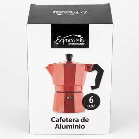 Cafetera en aluminio. Capacidad de 6 tazas. Multicolor. Diseño de asa ergonómico. Tiene válvula de seguridad. De fácil uso. Tapa que abre en sentido vertical. Marca Expressions con variedad de productos de cocción y utensilios. confiables y de gran durabilidad que podrán convertirse en tus aliados a la hora de realizar tus actividades diarias sin problema alguno. Hf3-2 Los productos marcados como 'PRODUCTO SURTIDO' pueden no ser idénticos a los que aparecen publicados en las imágenes. Las imágenes son ilustrativas. Al comprar un producto identificado como producto surtido, aceptas que podrás recibir un producto con características y atributos tangibles diferentes a los que aparecen en las imágenes del sitio o la publicidad. Los productos surtidos mantendrán las propiedades físicas, químicas y técnicas necesarias para su funcionamiento y uso de acuerdo a su naturaleza.