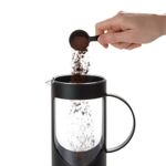 Prensa Francesa , Color Negro, 0.37 litros / 12.7 onzas fabricada con plástico Tritan, con pico o boquilla de fácil vertido, infusor de cierre patentado integrado directamente en el émbolo de la prensa francesa permite un proceso de preparación para conservar el sabor recién prensado. Tapa filtrante que ayuda a reducir los sedimentos en las tazas de café y bebidas a base de expresso. Libre de: Bpa. No Apta para: - Lavavajillas. - Uso en horno. - Uso en microondas. - Evite el uso de utensilios metálicos o inadecuados con borde afilado. - Otros usos diferentes al uso doméstico, no industrial, solo para Bebida, líquidos. - Uso de productos químicos o limpiadores abrasivos. - Evitar el uso de utensilios metálicos o inadecuados con borde afilado.