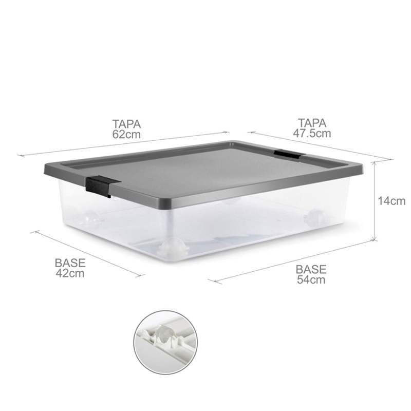 OrganizaciónCajas OrganizadorasBajo CamaCaja Bajo Cama Estra 7X12X34Cm Transparente 28 Lt Plastico 4-