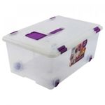 ORGANIZADOR BAJO CAMA GREAT PLASTIC CON RUEDAS 42Lt-Transparente Organiza tu ropa o elementos de hogar con esta practica caja la cual puedes guardarla bajo tu cama. Posee ruedas para un mejor arrastre. Elaborada con plastico de alta calidad. Su tapa permite una conservación perfecta de los elementos, cubriendolos del polvo y humedad.