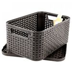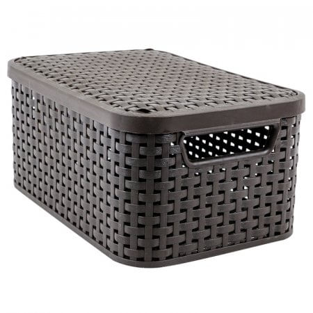 Caja Organizadora Curver Café. Se trata de tu hogar, el principal y único espacio íntimo donde se convive tanto con familiares como con nuestros colegas del trabajo o colegas de estudio. Por ello, es costumbre dedicarle una cantidad de tiempo adicional para lograr dar con los mejores productos para así mantenerla: aquellos que reúnen calidad, durabilidad y utilidad. Esta caja organizadora figurará como el utensilio ideal al momento de organizar tus utensilios con la finalidad de maximizar el potencial de nuestros espacios. Además, la misma puede apilarse, haciendo constar que se trata de un producto práctico y de cómodo y sencillo empleo. Cuenta con dos asas laterales las cuales facilitan un mejor agarre y su tapa es completamente desmontable, facilitando la introducción de objetos dentro del mismo. Siempre se recomienda tomarse el tiempo necesario para hacer una buena elección de los productos que se usarán en el hogar y sobre todo los se utilizarán para organizar y ajustar cada uno de los diferentes espacios, ya se trate de la cocina, los cuartos, el baño, etc., ya que de ello depende que los aprovechemos al máximo o no: esta marca se distingue por la calidad y rigurosidad en la elaboración de todos sus productos, No te arrepentirás, sin duda alguna, de tu elección. Diseño moderno. Forma rectangular. Material: plástico. Color: marrón. Ideal para espacios reducidos.