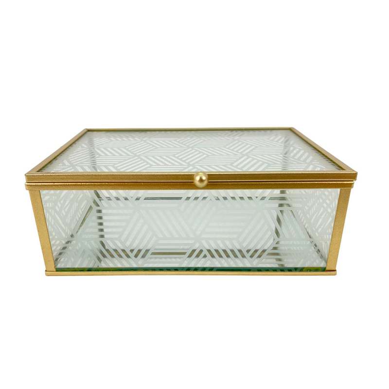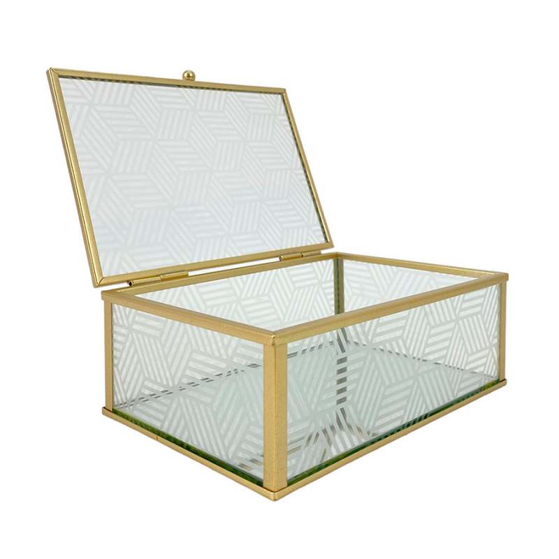 Caja Decorativa Concepts Rose Blush en vidrio color dorado, perfecta para sumar un detalle refinado y funcional a tu decoración. Con medidas de 15x6,5x10 cm, es ideal para organizar joyas, llaves u otros objetos pequeños con estilo. Su diseño compacto y elegante realza cualquier superficie, aportando brillo y personalidad a espacios como tocadores, escritorios o mesas auxiliares.