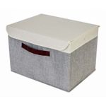 Ideal para guardar objetos de mayor tamaño, la caja plegable de 28x38x26cm en color taupe ofrece más capacidad y es ideal para ropa, juguetes o artículos del hogar.